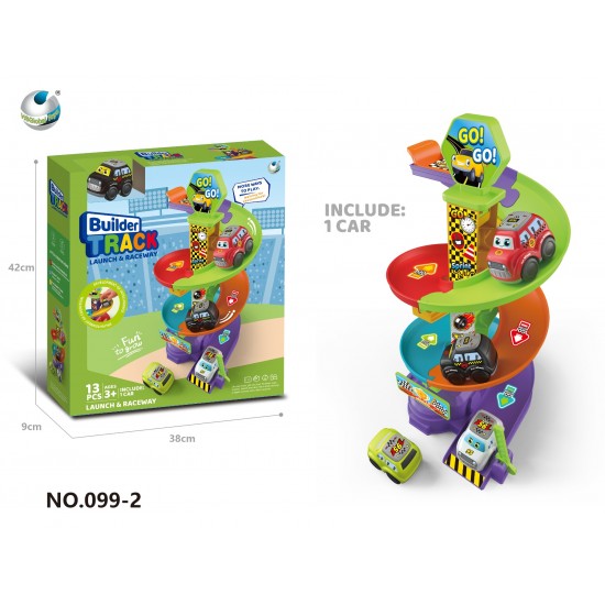 Pregateste-te pentru o cursa plina de adrenalina cu setul "Builder Track"! Acest turn de lansare supraetajat este conceput pentru a oferi micilor piloti o experienta de joaca dinamica. Masinuta este asezata pe rampa superioara si, la semnalul de start, coboara in viteza pe pista in spirala, trecand prin curbe stranse pana la linia de sosire.