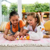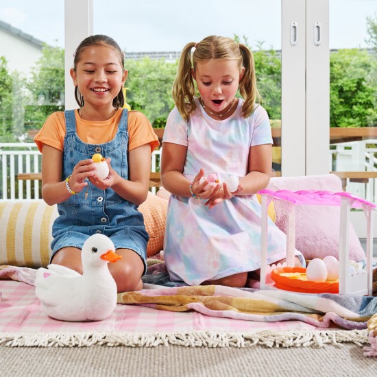 Admira familia de ratuste Pets Alive. Aici ve-i gasi o rata alba cu ochi aurii, care locuieste in propria ei casa colorata, cu un cuib confortabil. Ea a depus patru oua cu surprize inauntru.