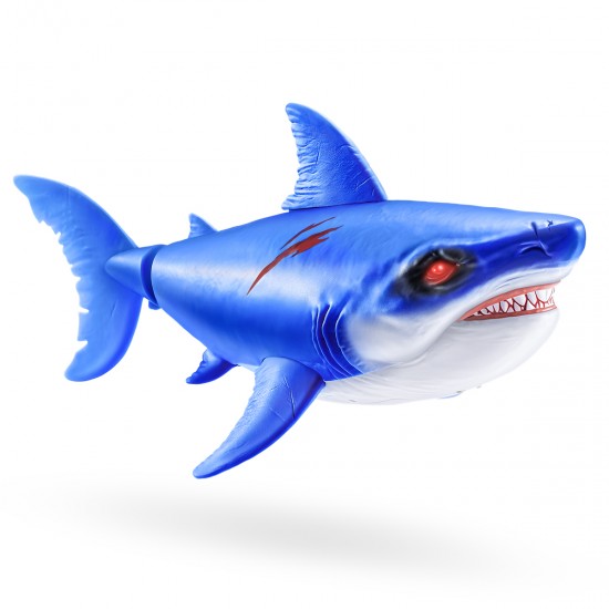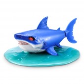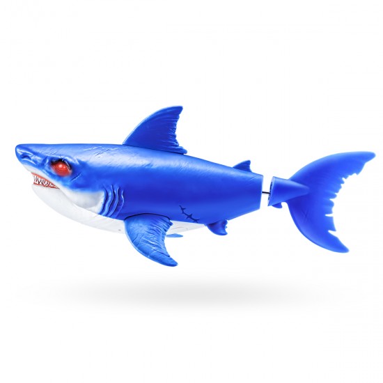Mai intai, copilul asambleaza rechinul din piese (toate componentele sunt ambalate separat pentru montaj usor). Apoi il scufunda in apa si incepe magia: coada se misca, ochii se lumineaza, iar rechinul se activeaza automat. Datorita miscarii cozii, jucaria inoata singura, imitand comportamentul unui rechin real.