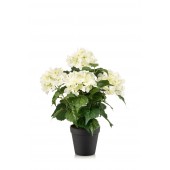 ufa artificiala Hortensie (Hydrangea), alb/verde, 40 cm, ghiveci negru