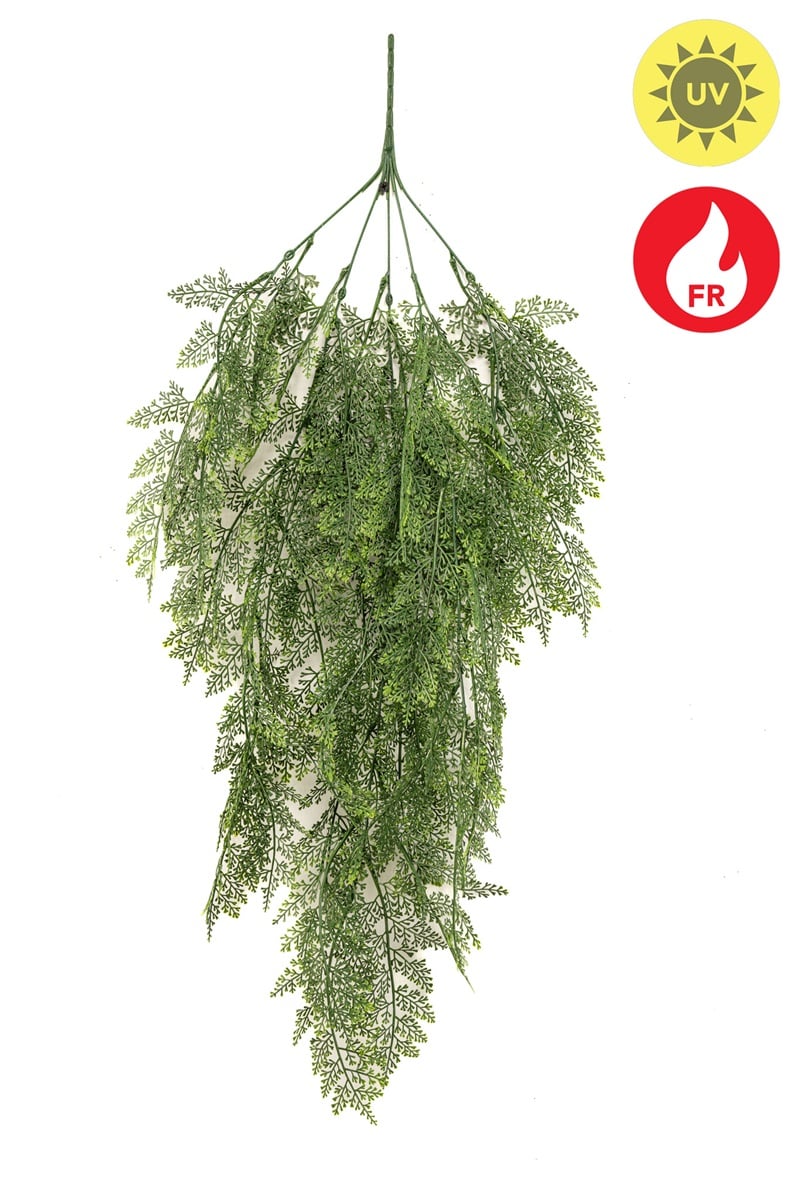 Tufa suspendata artificiala de Thuja, cu aspect natural si bogat, are 80 cm lungime si este tratata UV pentru a rezista conditiilor exterioare. Ideala pentru fatade, pergole sau gradini verticale.