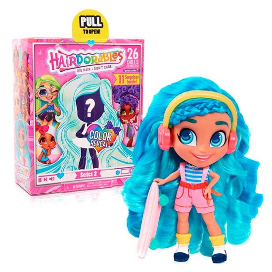 Papusa surpriza Hairdorables Colectible Surprise Dolls este intr-o cutie inchisa, care contine 11 surprize, incluzind pantofi, accesorii, autocolante, un pieptene pentru par si foaia colectionarului. Trasatura specifica a papusilor este coafura lor extraordinara! Hairdorables Colectible Surprise Dolls au parul foarte lung si moale, cu accente stralucitoare sub forma de fire colorate. Colectia include 12 personaje (cele mai bune prietene): Noe, Bella, DeeDee, Sallee, Kat, Skylar, Harmony, Neila, Kali, Willow, Brit si Rayne. Fiecare personaj din colectie este reprezentat in 3 stiluri diferite, astfel colectia include un numar total de 36 de papusi, printre care exista doua papusi rara si alta foarte-rara.