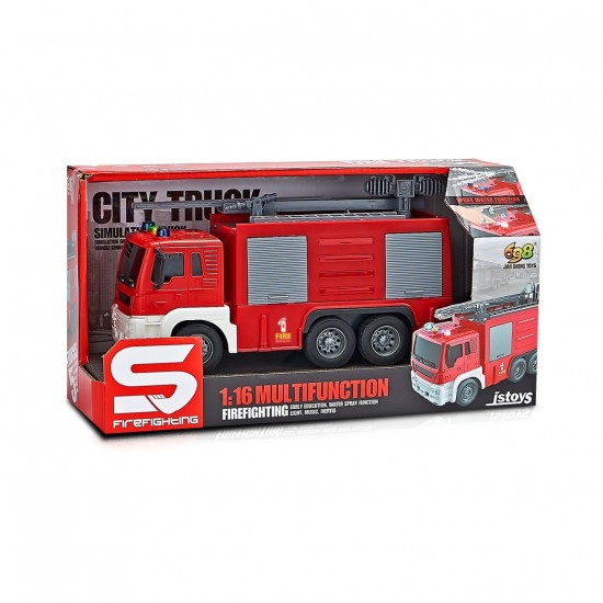 Masina de pompieri cu furtun de apa, cu frictiune, lumini si sunete, 1:16, jstoys