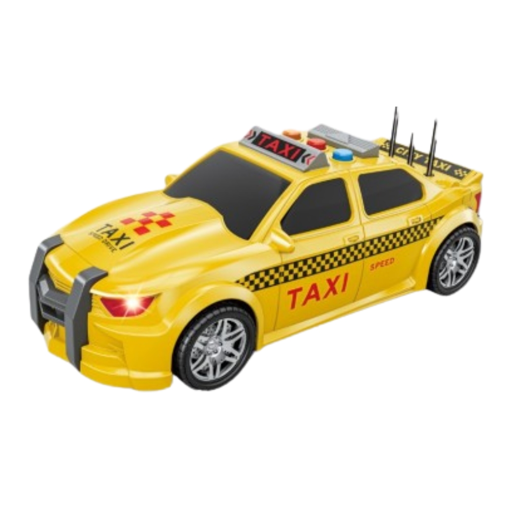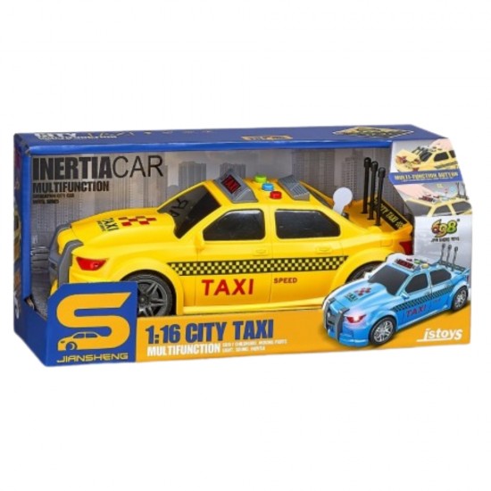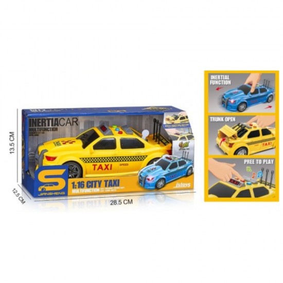 Masina Taxi cu inertie si portbagaj care se deschide, sunete si lumini, 1:16, jstoys