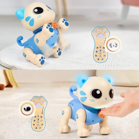 Jucarie Robot Pisica ALBASTRA Interactiva cu RC, 17cm, ZJA346111