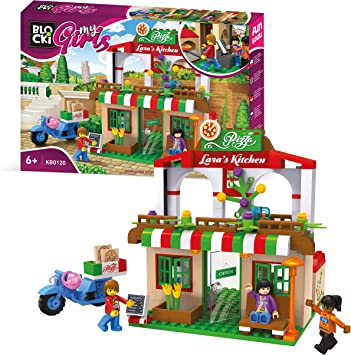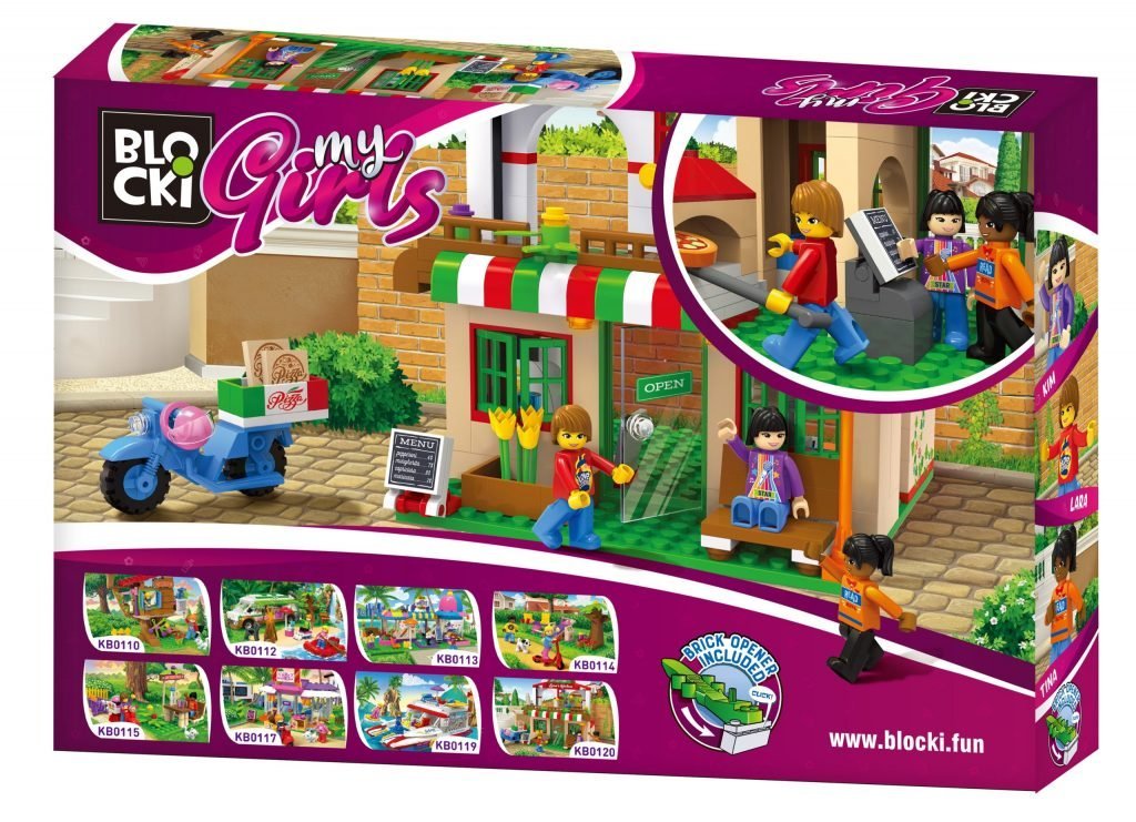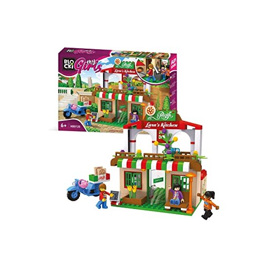 Blocki My Girls, Pizzeria lui Lary, este setul perfect pentru iubitorii de cuburi de constructie si pentru iubitorii de pizza. Setul contine trei figurine, Kim, Lara si Tina, o pizzerie si un scuter ideal pentru livrat pizza delicioasa la domiciliul clientilor.