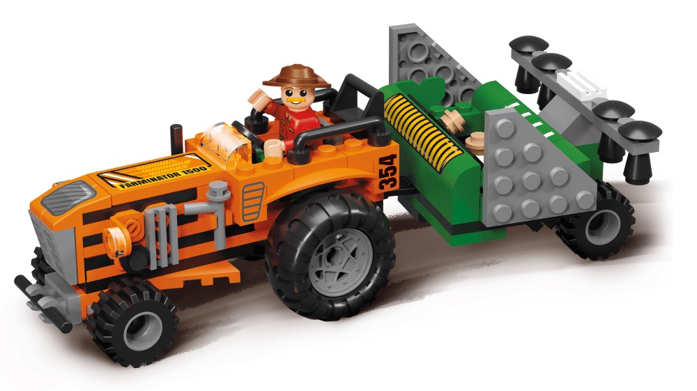 Elementul principal al setului este tractorul cu o semanatoare atasata. Din set nu putea lipsi o mini-silueta de fermier si accesoriile necesare muncii la camp