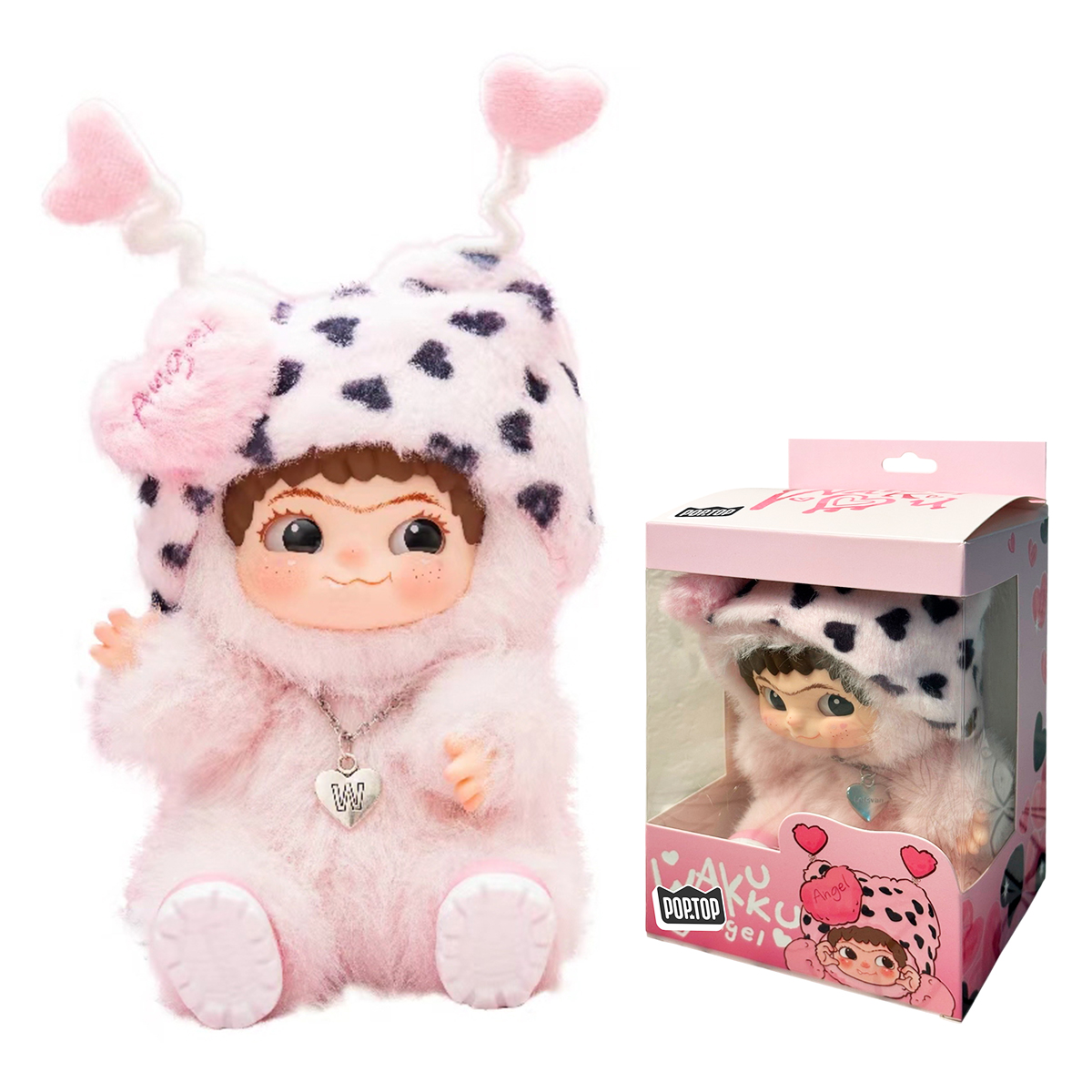 Figurina este realizata din materiale textile in combinatie cu PVC in unele zone pentru detalii, oferind o textura placuta si durabila. Seria Wakuku este recunoscuta pentru personajele sale expresive si design modern, iar acest model "Angel" este o editie limitata POP TOP, perfect pentru a completa o colectie sau pentru a deveni un cadou special.