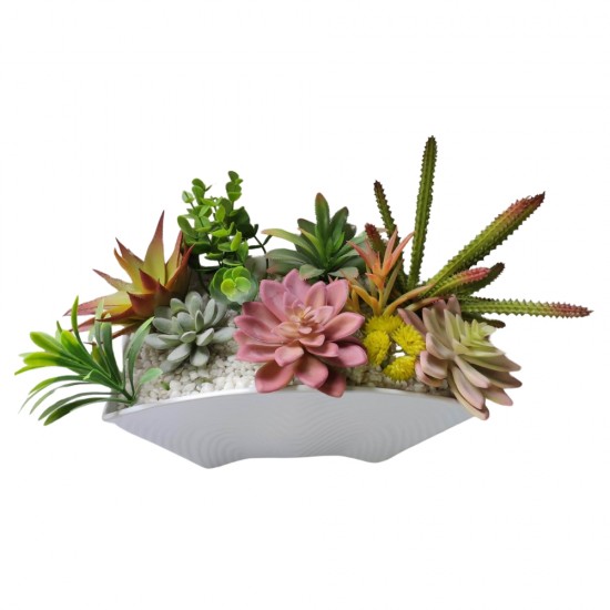 Aranjament plante suculente multicolore artificiale in ghiveci 40x20x24 cm, ZJA361808