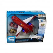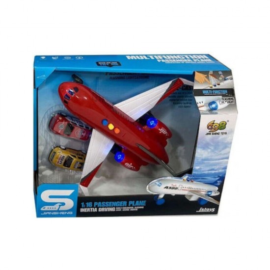Avion cu frictiune rosu si 2 masinute, sunete si lumini, 1:16, jstoys, ZJA347494