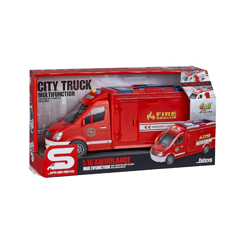 Microbuzul rosu ambulanta JS126E este o jucarie interactiva si realista, conceputa pentru copiii care sunt fascinati de vehiculele de interventie si salvare. Realizat la scara 1:16, acest model impresioneaza prin detaliile atent lucrate si functionalitatile multiple. Este echipat cu mecanism cu frictiune pentru deplasare usoara, usi care se deschid pentru un plus de realism, precum si cu sunete si lumini specifice unei ambulante reale. Jucaria stimuleaza jocurile de rol, creativitatea si imaginatia copiilor, ajutandu-i sa inteleaga importanta serviciilor de urgenta. Constructia solida si designul atractiv fac din acest microbuz o alegere excelenta atat pentru joaca zilnica, cat si pentru colectiile de vehicule speciale.