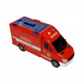 Microbuz rosu ambulanta cu frictiune si usi care se deschid, sunete si lumini, 1:16, JSTOYS, ZJA329911