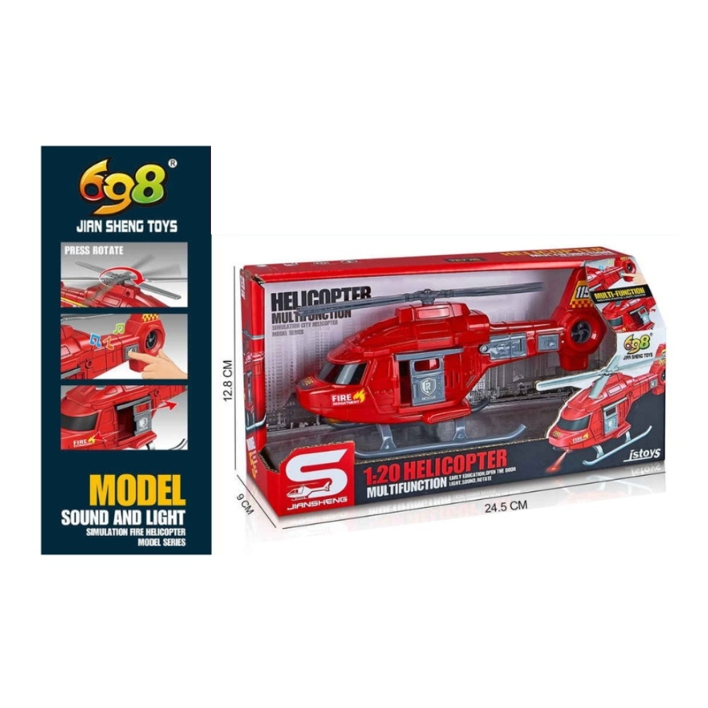 Elicopter pompieri rosu cu sunete si lumini, 1:20, jstoys, ZJA364049