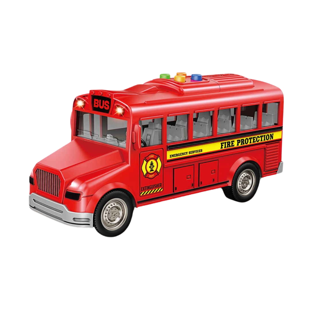Masina este echipata cu efecte sonore si luminoase, care imita sunetele si luminile reale unui autobus scolar, oferind o experienta captivanta si realista de joaca. Jucaria asigura un mecanism de frictiune, care ii permite sa se deplaseze inainte dupa ce este usor impinsa.