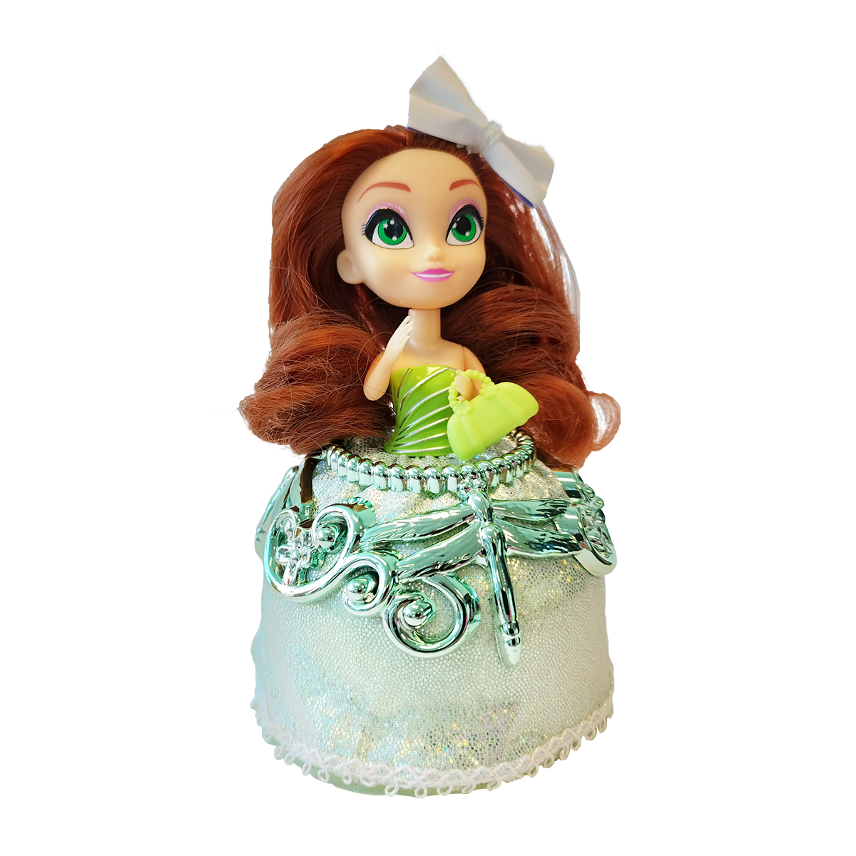 Pentru a transforma sticla intr-o papusa, trebuie sa scoti capacul de plastic si sa scoti partea de jos si papusa sta deja in fata ta in rochia ei frumoasa. Accesoriul de par isi poate schimba culoarea; pentru a face acest lucru, trebuie sa umpli o sticla cu apa si apoi sa o pulverizezi pe funda.