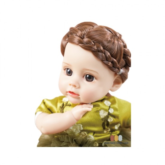 O jucarie adorabila si interactiva, ideala pentru copiii care adora papusile si ingrijirea lor. Papusa are un aspect fermecator, cu par brunet care poate fi coafat in diferite stiluri. Este imbracata intr-o rochie verde frumoasa, care adauga un plus de culoare si stil.