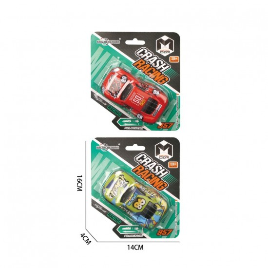 Jucarie Masina din metal 10,3 cm, mecanism pull-back, Crash Racing, in asortiment