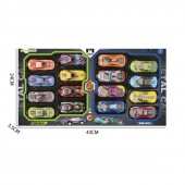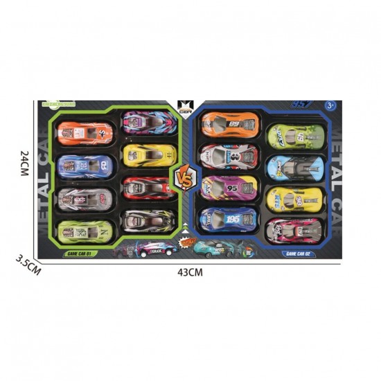 Set cu 16 masinute diferite, functie salt in fata si lateral