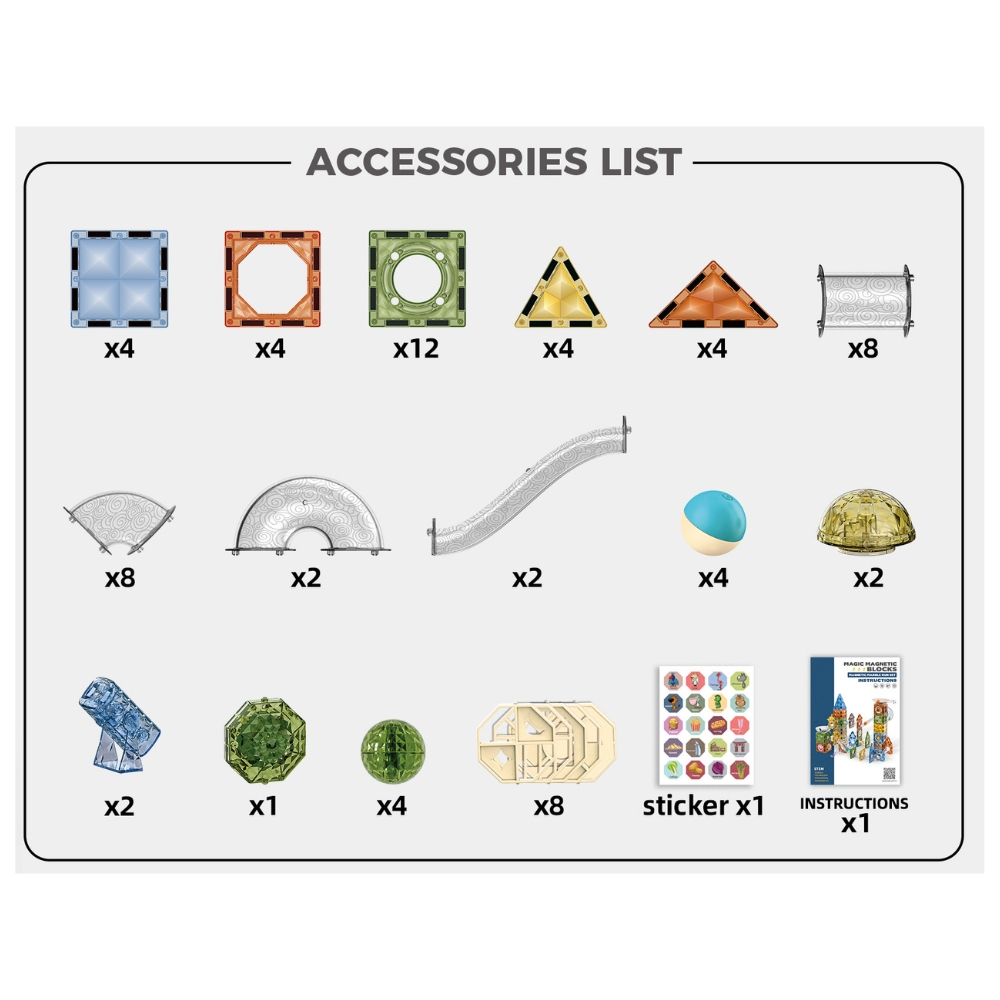 Setul de constructie magnetic cu lumini, compus din 69 de elemente, iti va oferi o experienta unica si captivanta de joc, combinand magia magnetismului cu un traseu interactiv pentru bile. Acest set este conceput pentru a stimula creativitatea, gandirea logica si coordonarea mana-ochi. Luminile LED incorporate adauga un efect spectaculos, facand traseul cu bile si mai fascinant.