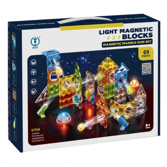 Set de constructie magnetic cu lumini 69 el. traseu cu bile, ZJA354950
