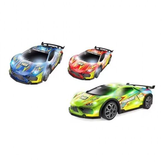 O masina cu telecomanda, inovatoare, conceputa pentru a oferi copiilor o experienta de joc dinamica si captivanta. Aceasta dispune de un sistem RC de control de la distanta care iti permite sa o manevrezi cu usurinta pe diverse tipuri de suprafete. Designul sau elegant, cu un corp luminos, adauga o estetica spectaculoasa, facand-o sa iasa in evidenta chiar si in intuneric.