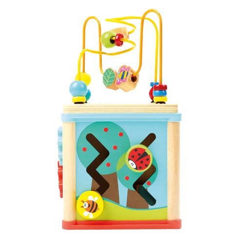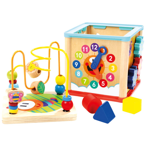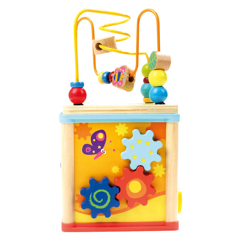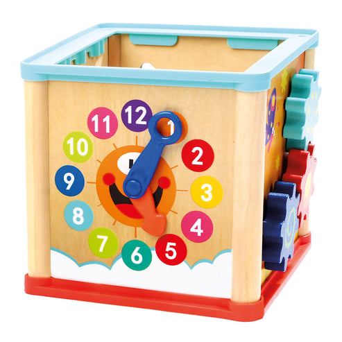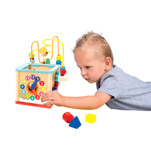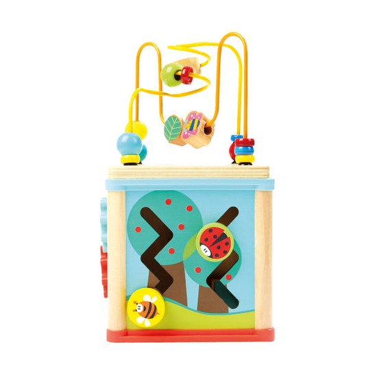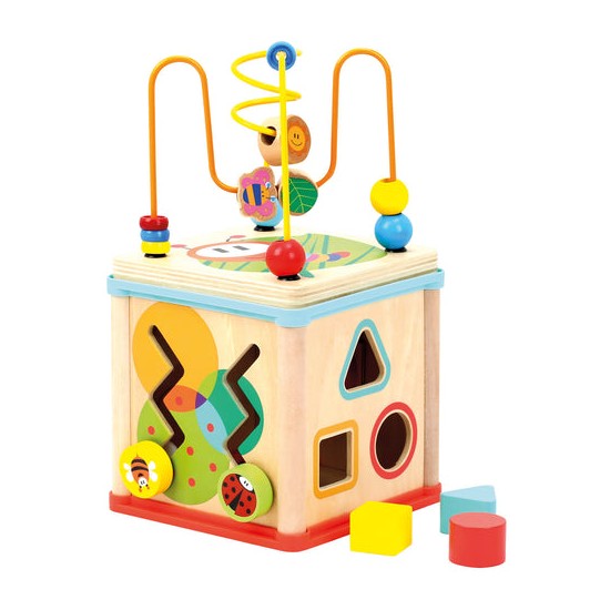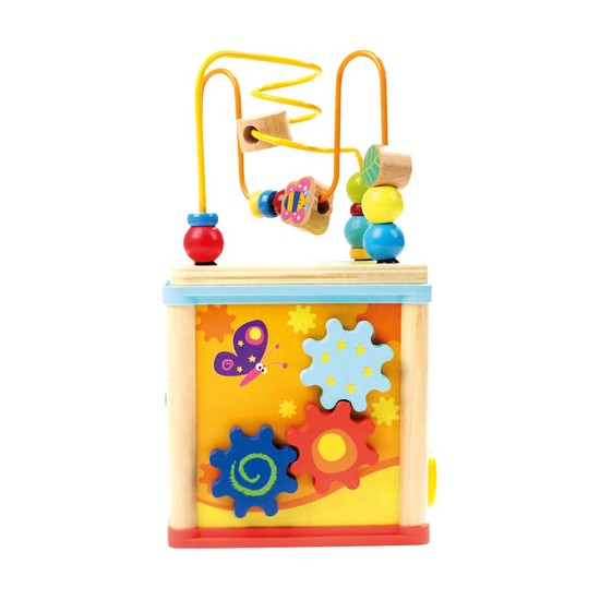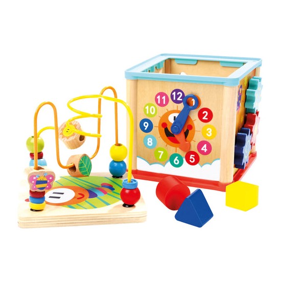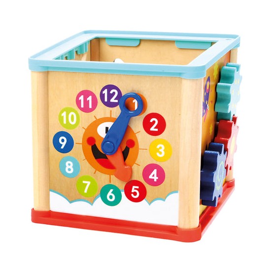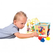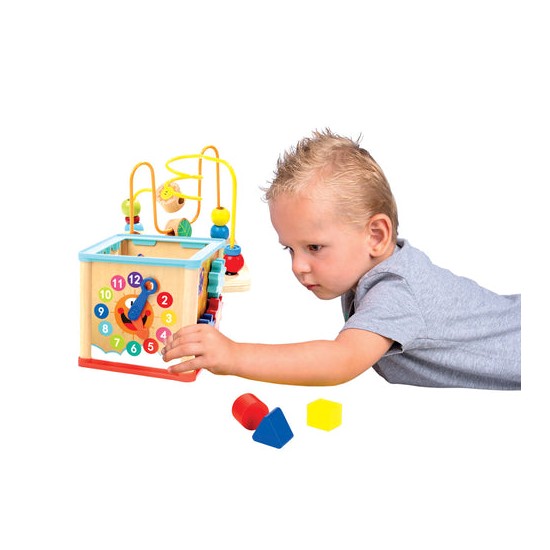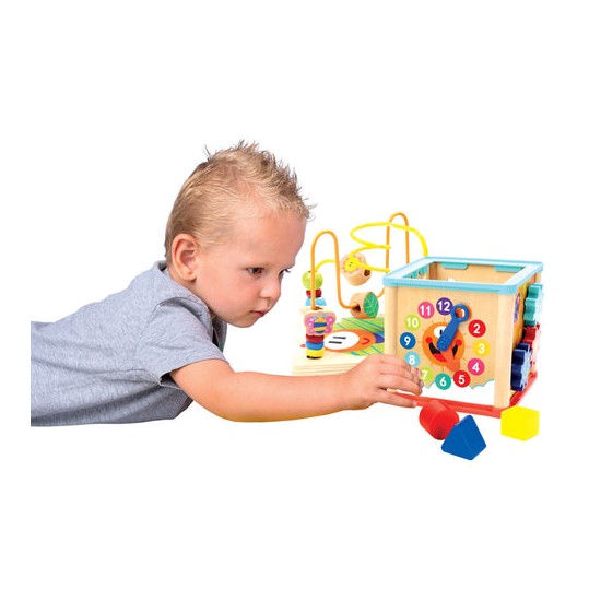 Cubul educativ este o jucarie motrica datorita partii superioare care reprezinta un traseu complicat pe care se misca bilele, este o jucarie educativa pentru ca exista laturi cu labirint, numaratoare, ceas, acestea ajutand la invatarea notiunilor esentiale pentru lumea din jur.