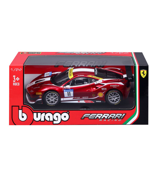 Modelul de masina Ferrari 488 Challenge, Bburago va fi un cadou excelent atat pentru un pasionat de masini mici, cat si pentru un fan adult al masinilor din industria auto globala.