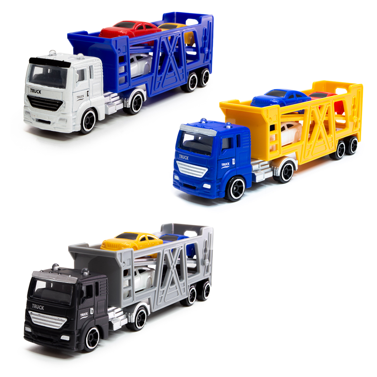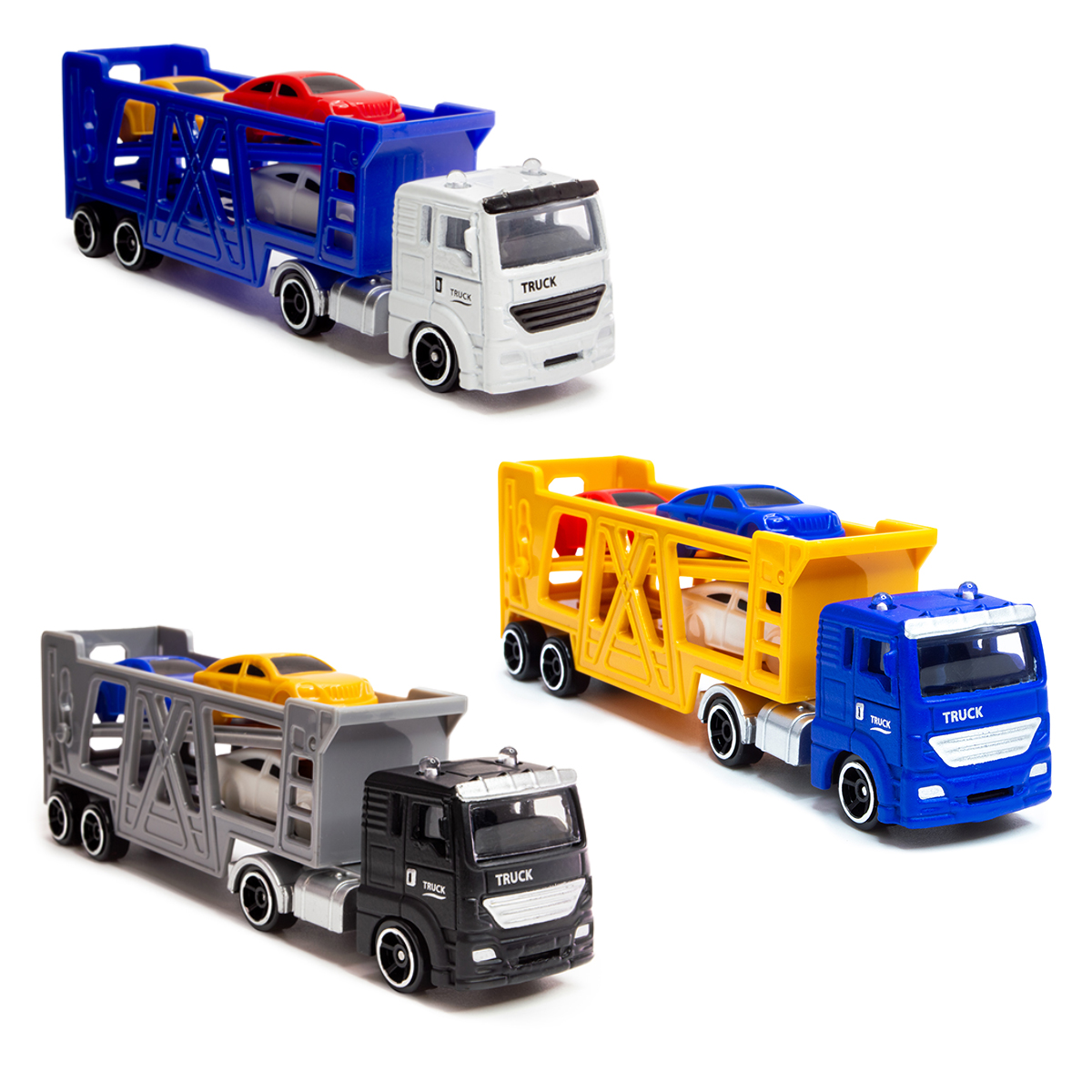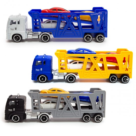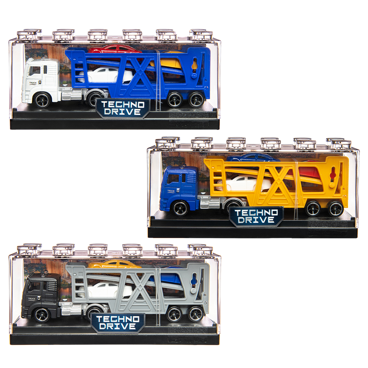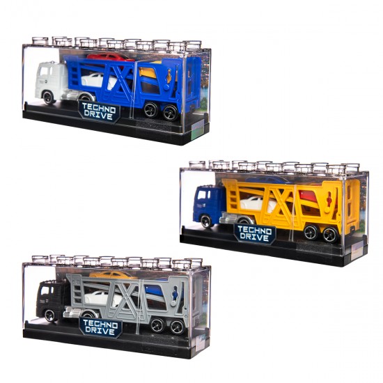 Macheta Camion transportor de masini in cutie din plastic TechnoDrive (3 modele)