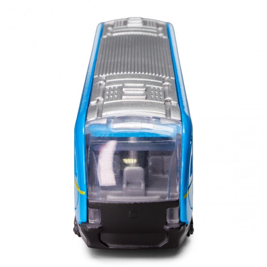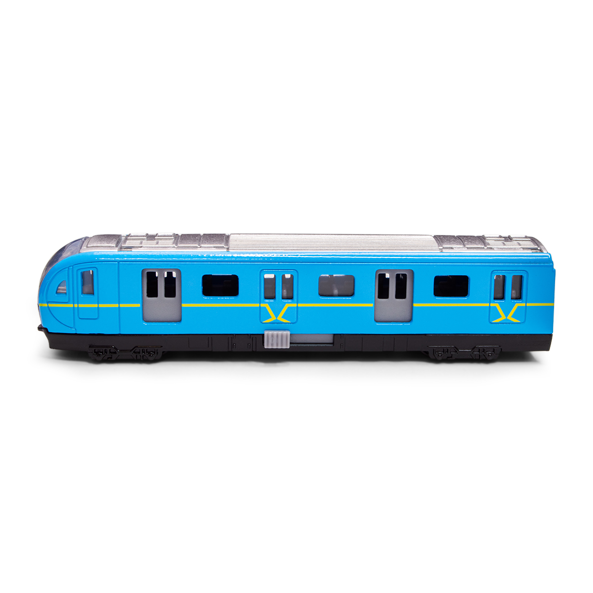 Modelul are caroserie metalica rezistenta, ceea ce ii ofera durabilitate si il face potrivit pentru joaca activa. Usile vagonului se deschid cu ajutorul unei manete aflate dedesubt, detaliu care aduce un plus de interactiune si realism. Prin geamurile transparente se vede clar interiorul: scaunele pasagerilor si cabina mecanicului, ca intr-un metrou adevarat.