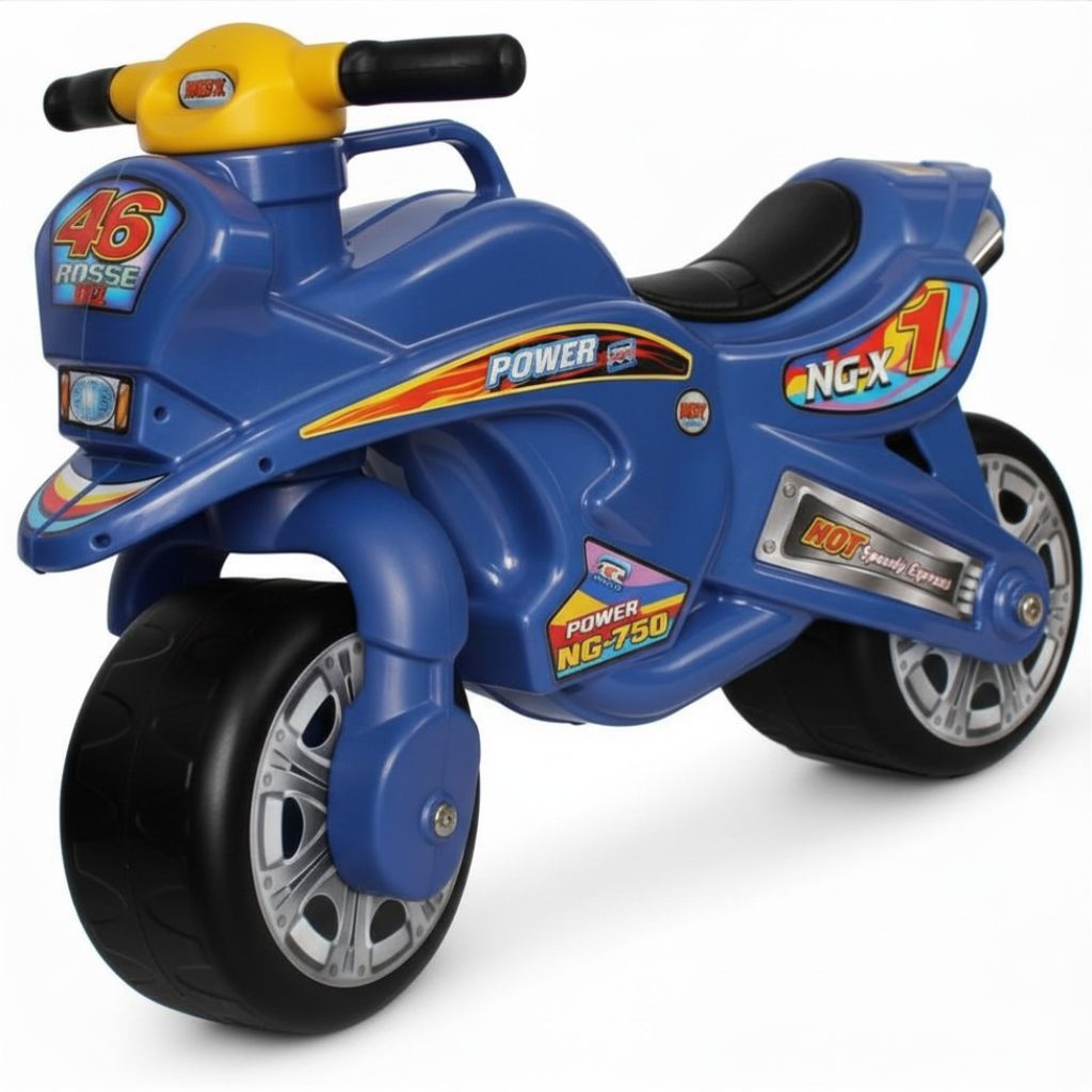 Motocicleta are dimensiuni aproximative de 68x25x50 cm, oferind confort si usurinta in utilizare pentru copiii cu varsta intre 1 si 3 ani. Constructia stabila si rotile rezistente contribuie la siguranta in timpul deplasarii, iar materialul din plastic durabil asigura o utilizare indelungata.