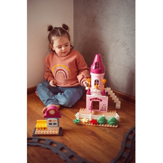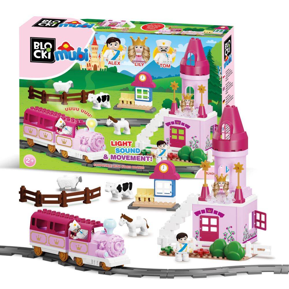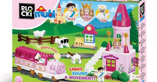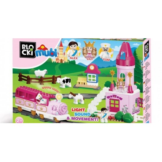 Set blocuri Castelul Printesei Lily Tren si Cale ferata cu sunete si lumini 85 el. Blocki Mubi