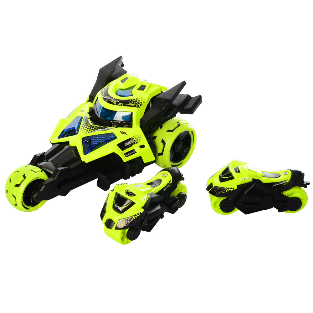 Jucarie Masina-Motocicleta 3 in 1 cu lansator, din metal 1:32, cu sunete si lumini, 2 tipuri