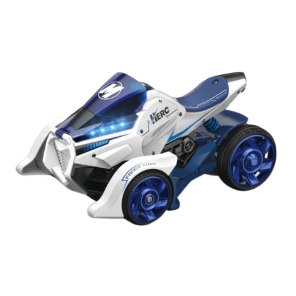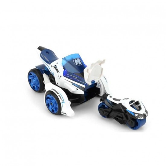Pachetul include o motocicleta din metal la scara 1:32 care functioneaza si ca lansator, impreuna cu doua motociclete mici. Ele sunt introduse in lansator pentru lansare, oferind mai multe moduri de a te bucura de jucarie.