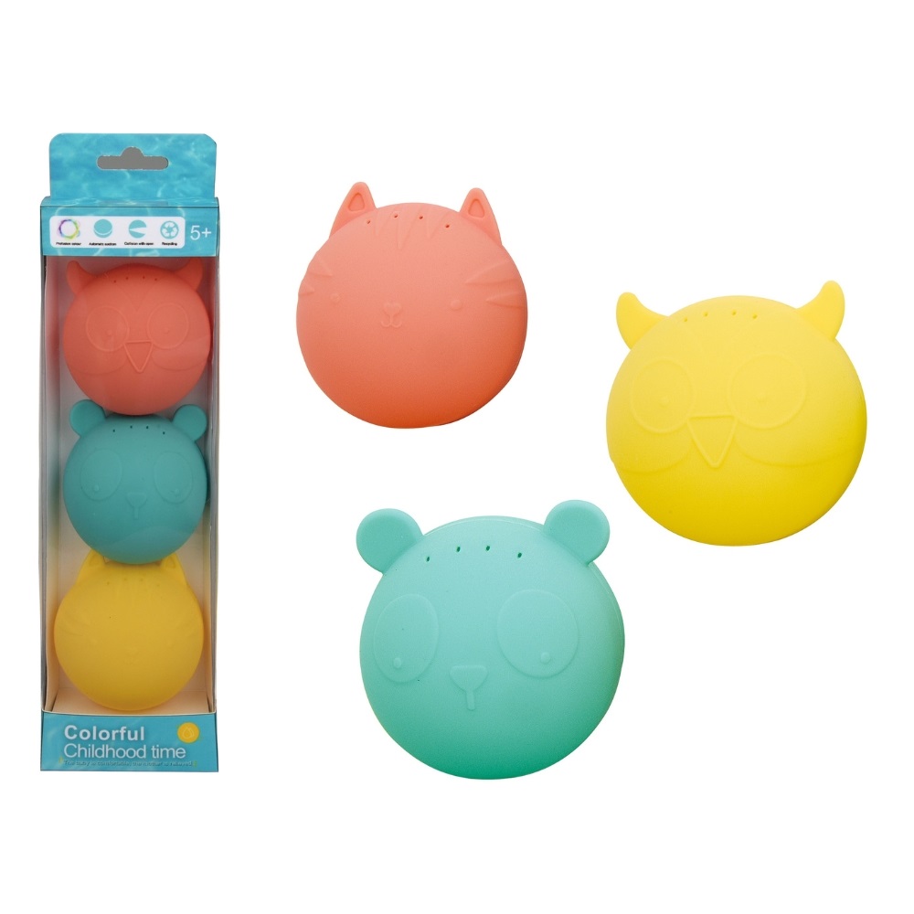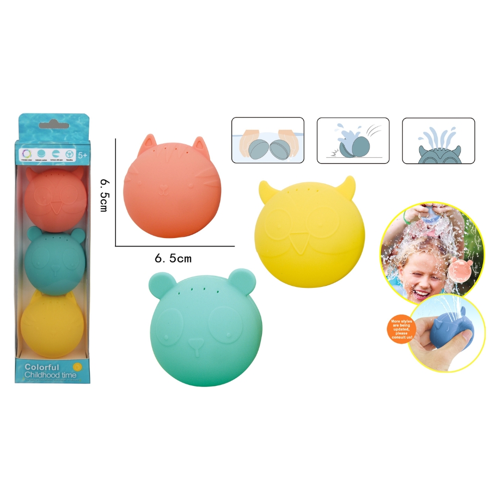 Set cu 3 mingi pentru jocul cu apa 6,5 cm din silicon, animale, cu gauri, ZJA335967