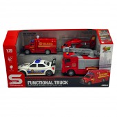 Un set super interactiv cu 4 autospeciale: masina de politie, 2 camioane pompieri si elicopter, la scara 1:20, destinata copiilor pasionati de jocuri de rol.