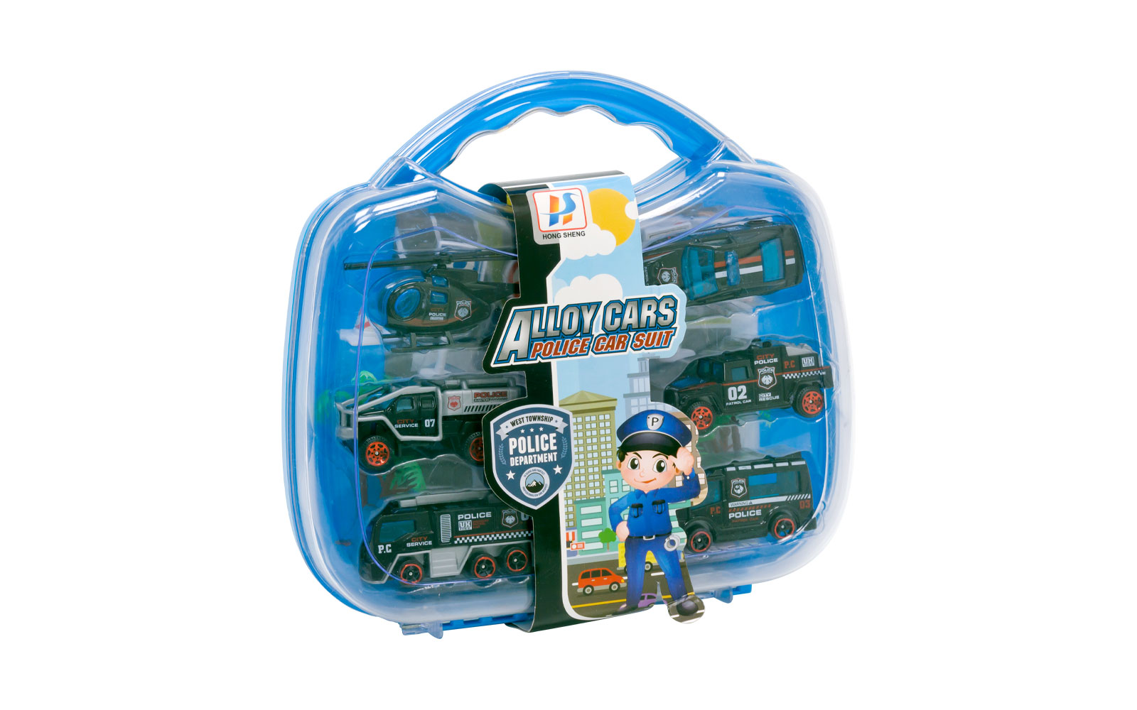 Set 6 masinute POLITIE, cu accesorii in valiza