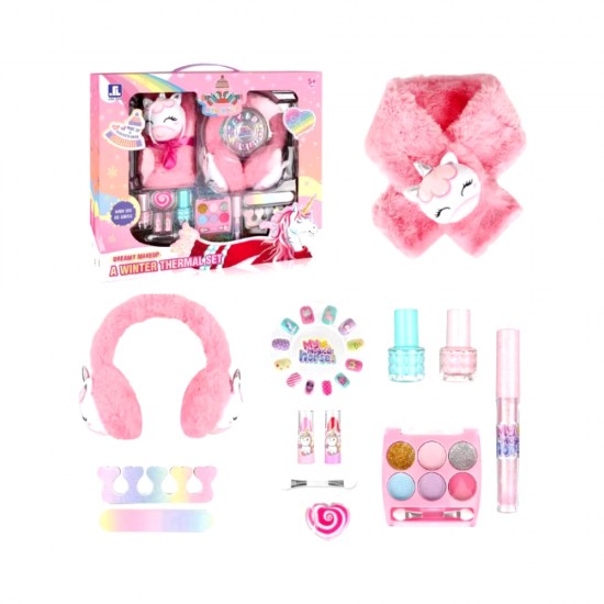 Set cu produse de machiaj, fular si casti roz, ZJA359838