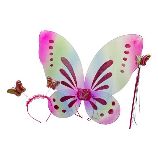 Set Aripi de Fluture cu cerc si bagheta multicolor cu sclipici, ZJA359644