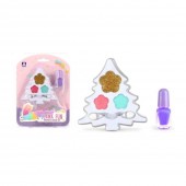 In set vei gasi: o paleta cu farduri in forma de bradut si lac de unghii.