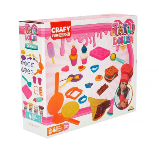 Vei gasi in acest set 22 accesorii pentru a te simti un adevarat bucatar si 4 cutii cu pasta non toxica a cate 50 g.