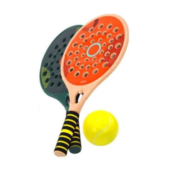 Setul de palete tenis cu minge este ideal pentru micii iubitori ai tenisului si ai jocurilor active! Acest set complet include doua palete rezistente si o minge moale, oferind tot ce ai nevoie pentru a te bucura de jocuri distractive si antrenante, fie in aer liber, fie in interior.