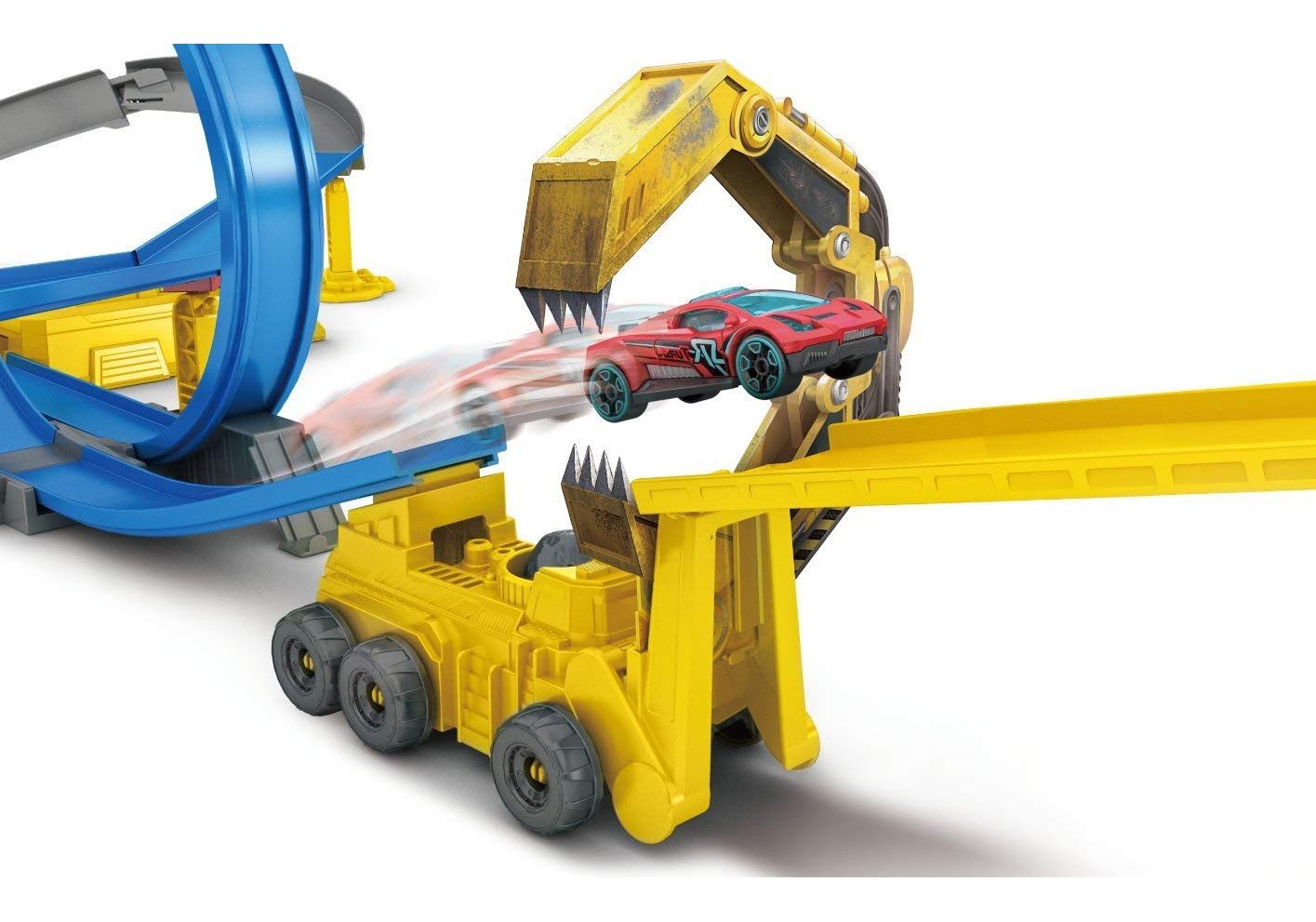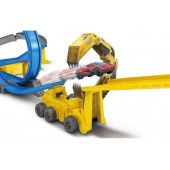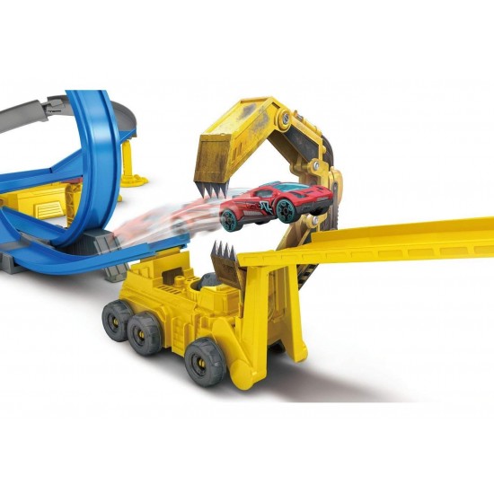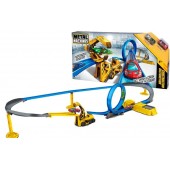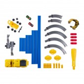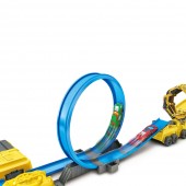 Setul contine: 2x Masina Metalica, 1x Booster Motorizat, 1x Masina de lansare a bolovanilor, 1x Pista Masiva de Curse care include un bucla de 360° si o rampa pentru cascadorii, 1x Cleste de Macara.