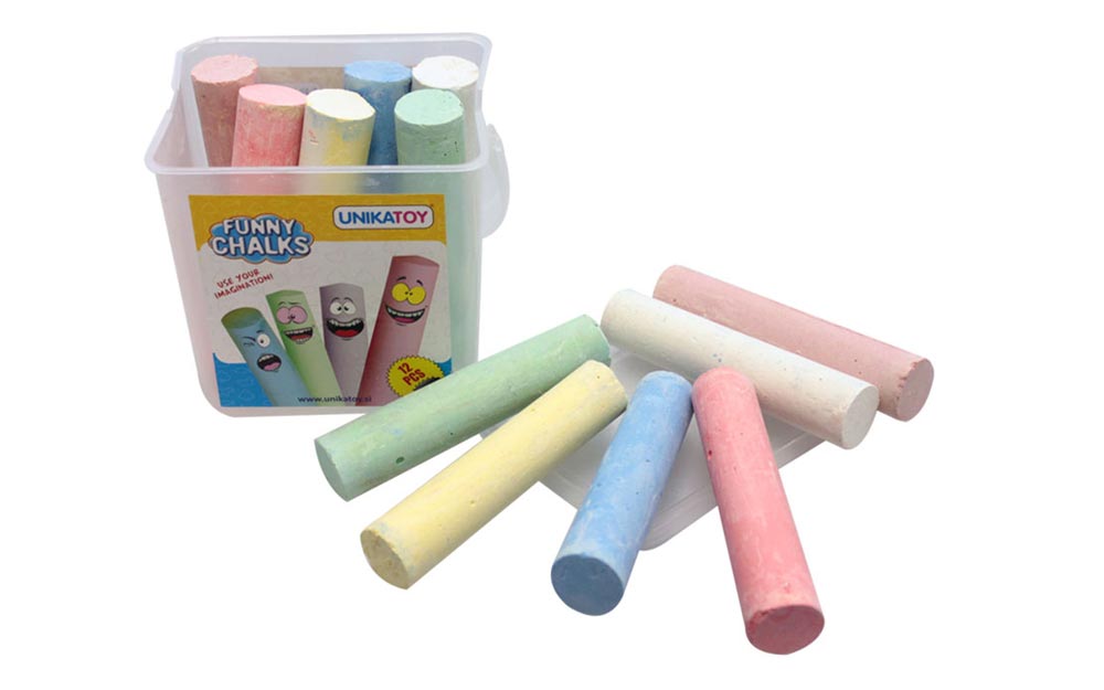 Se potrivesc pentru desen pe orice suprafata grosiera. Scris moale, compozitie naturala pe baza de creta, ghips, apa si pigmenti, fara un miros pronuntat. Urmele de creta se curata usor de pe maini.
