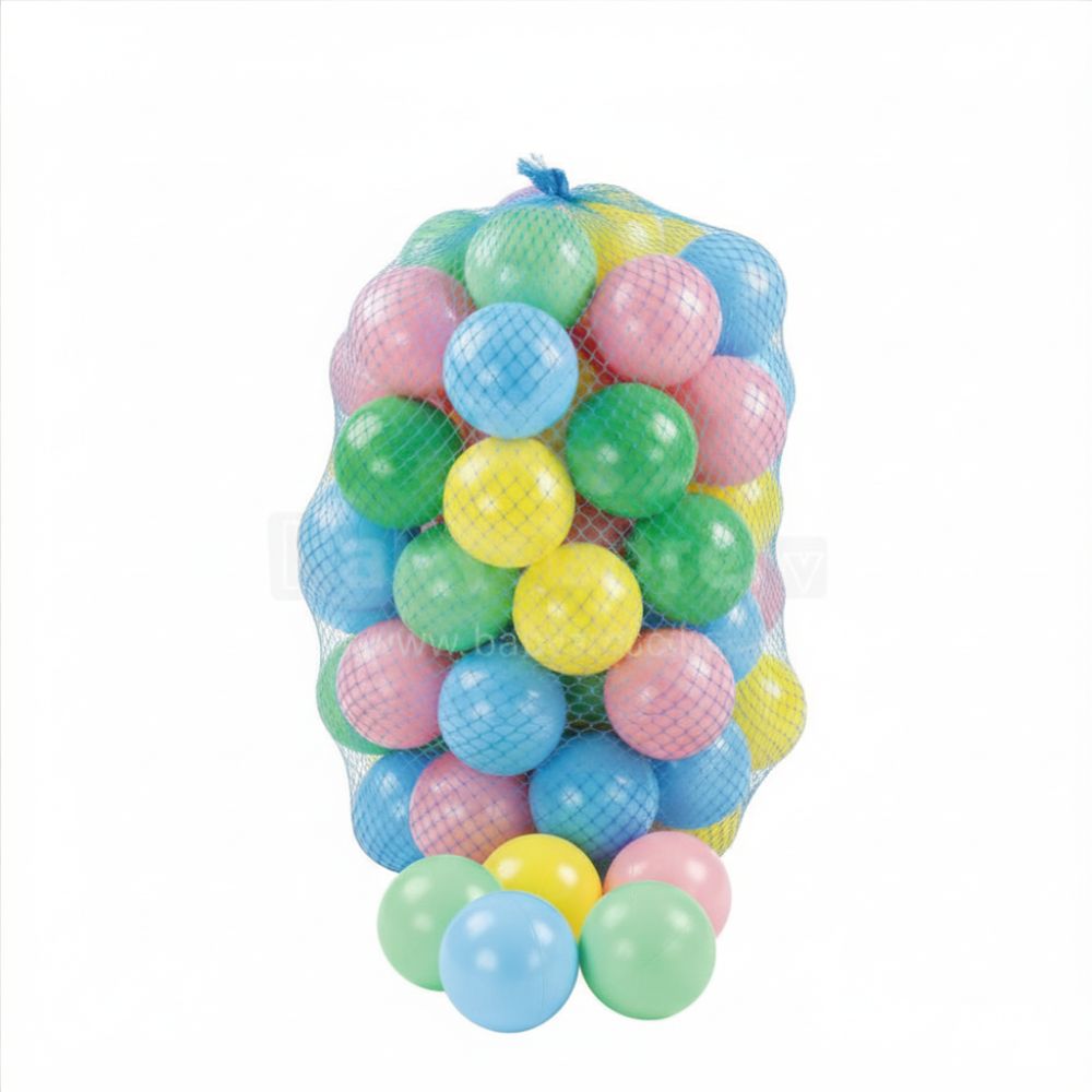 Set bile colorate pentru piscina copii, 100 bucati, diametru 60 mm, in plasa, pastel multicolor