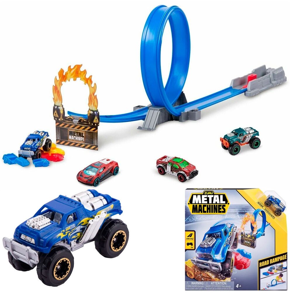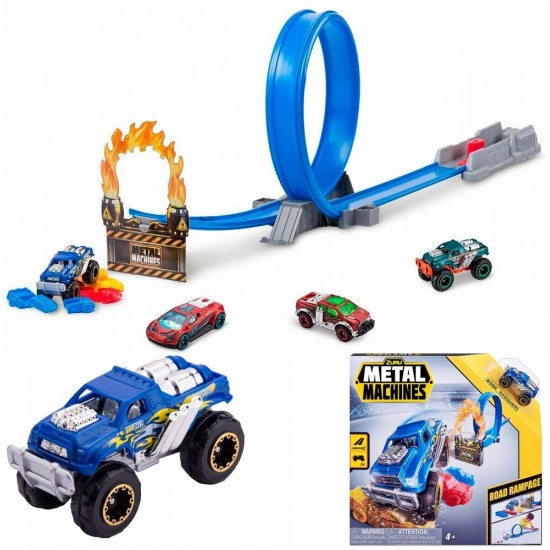 Setul Metal Machines Road Rampage este un vehicul cool care trece cu viteza prin bucle extreme si inele de foc.