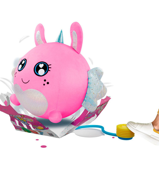 Scoate folia din cutie, deschide usa cu pompa si incepe sa pompezi aer. Jucaria se umfla, cutia se deschide, iar personajul apare cu un efect WOW! Incepe un joc distractiv si bucura-te de o dispozitie buna pentru intreaga zi!