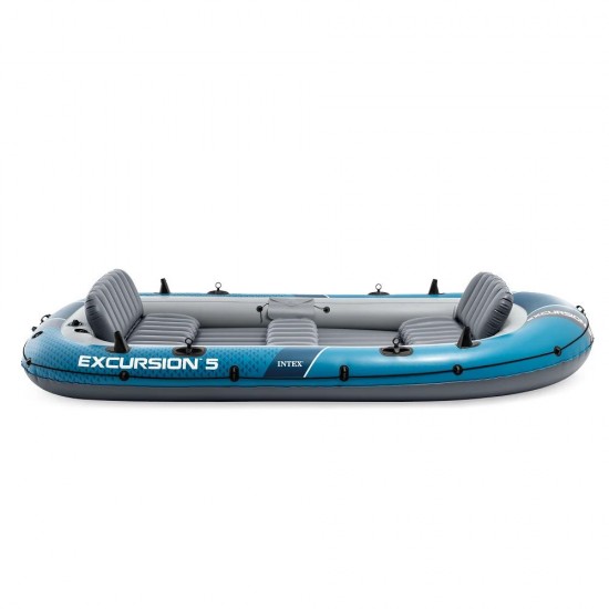 Barca gonflabila Intex Excursion 5, set complet cu vasle si pompa, 366x168x43 cm, max. 600 kg, cod 66325