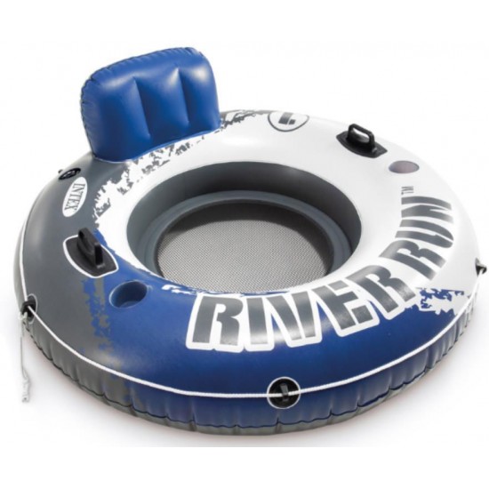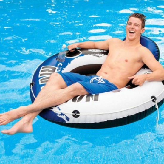 Bucura-te de relaxare suprema pe apa cu cercul gonflabil INTEX "River Run 1"! Confortabil si robust, este ideal pentru plimbari linistite pe rau, piscina sau lac. Dotat cu spatar, suport pentru pahar si manere solide, acest colac este conceput pentru confort si siguranta.