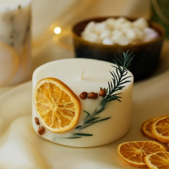 NY039 Lumanare rotunda 5 cm cu decor de Craciun