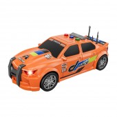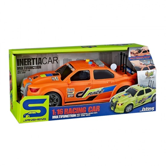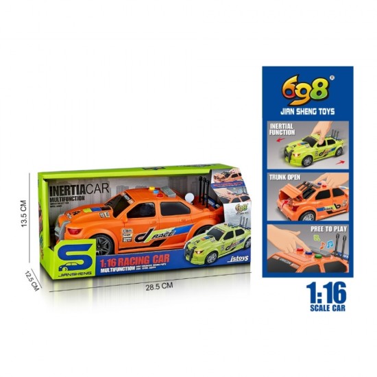 Masina de curse portocalie, frictiune, sunete si lumini, portbagajul se deschide 1:16, jstoys, ZJA314883